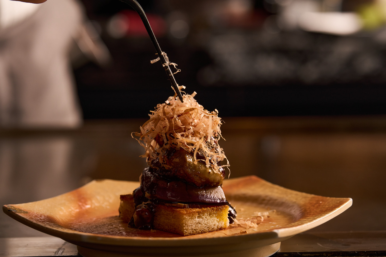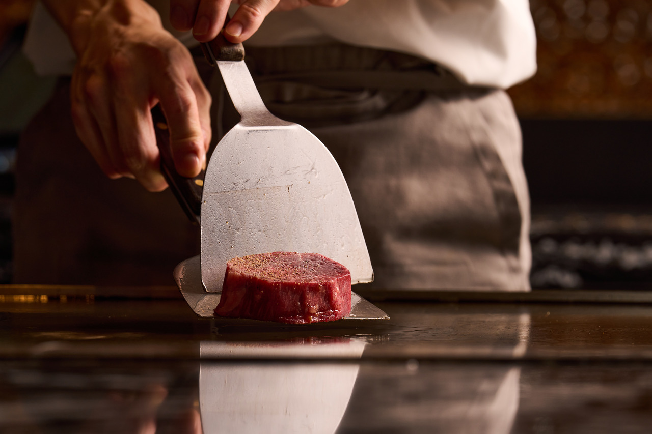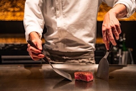 厨师在柜台前烧烤新鲜食材的铁板烧餐厅。由 Gourmandies 创始人长谷川北斗先生监修的创意西餐全套课程。