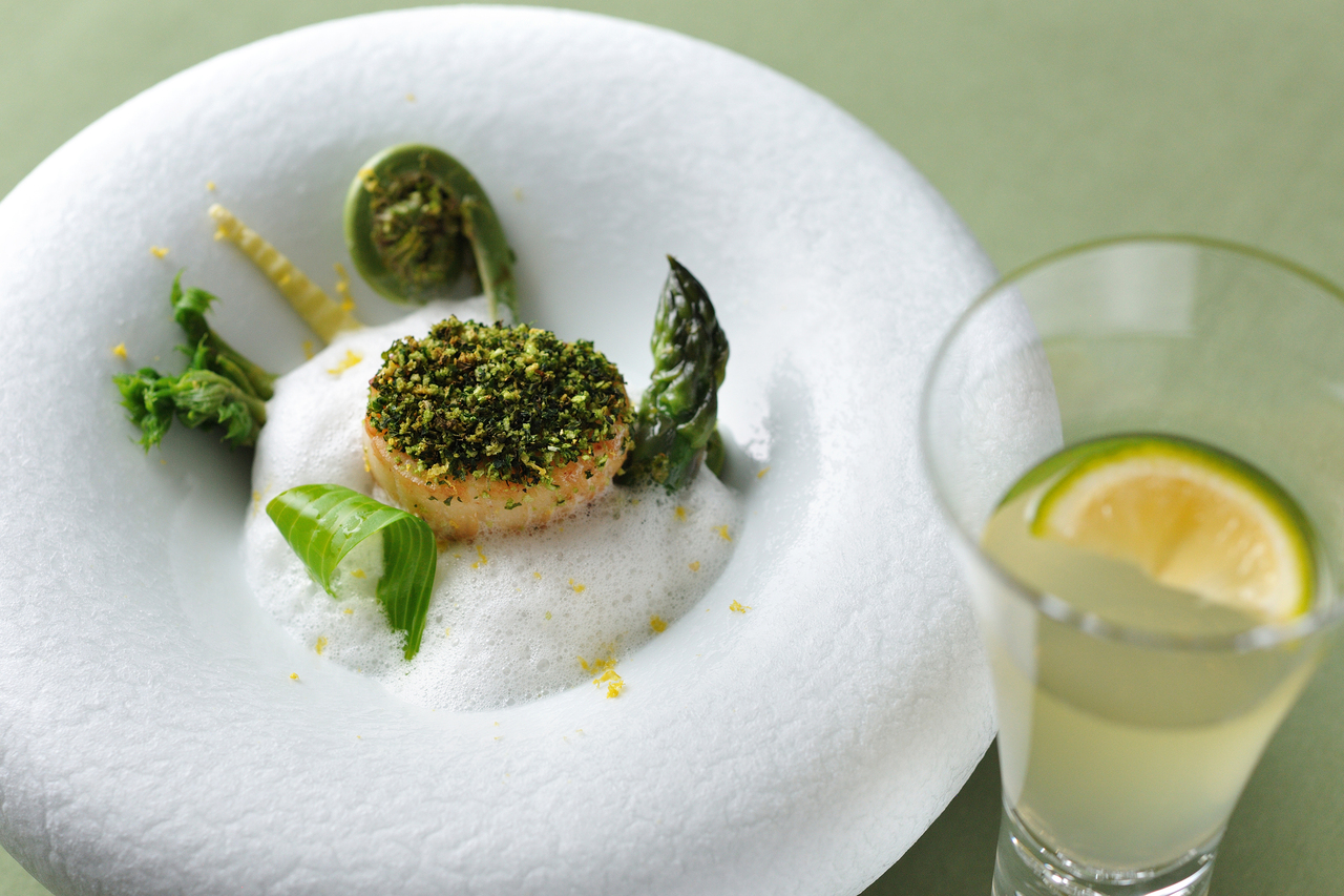 春季限定“芦笋海鲜”时令晚餐套餐。*菜单内容将于7月起有所调整。