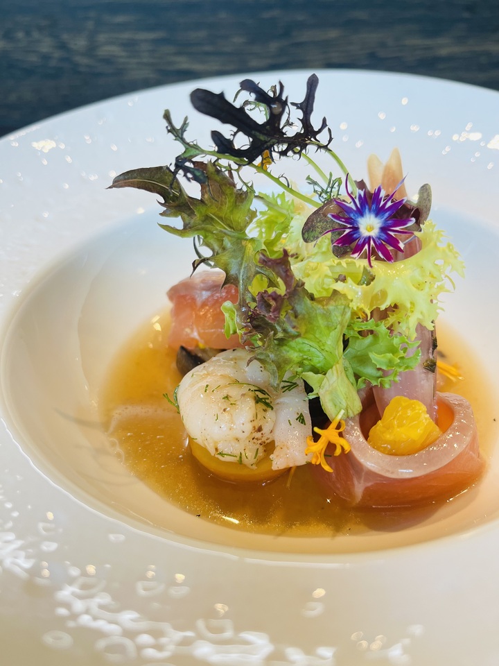 ●Red paprika mousse, local octopus, Kamakura vegetables and Kasuri methi