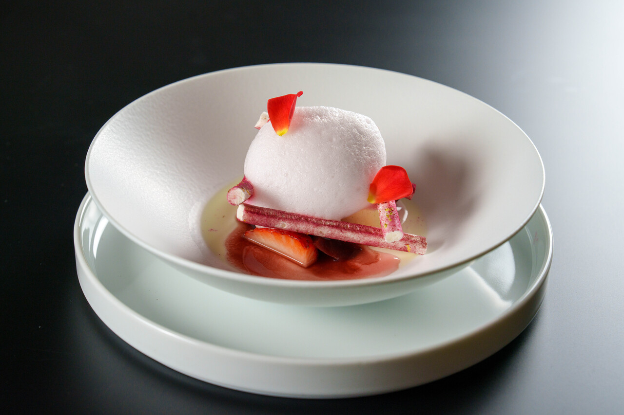 主菜 今日推荐以新鲜绿色植物为灵感的开胃菜 ◆汤 用蔬菜煮的健康汤 ◆蔬菜 烤西班牙栗子猪肉 新鲜绿色蔬菜的热闹氛围 或 +¥5,500 炭火烤品牌牛里脊 ◆甜点 自家制冰淇淋 ◆Pain fait maison 自家制烟熏柿子乡村面包 //餐后饮品 ※照片仅供参考。