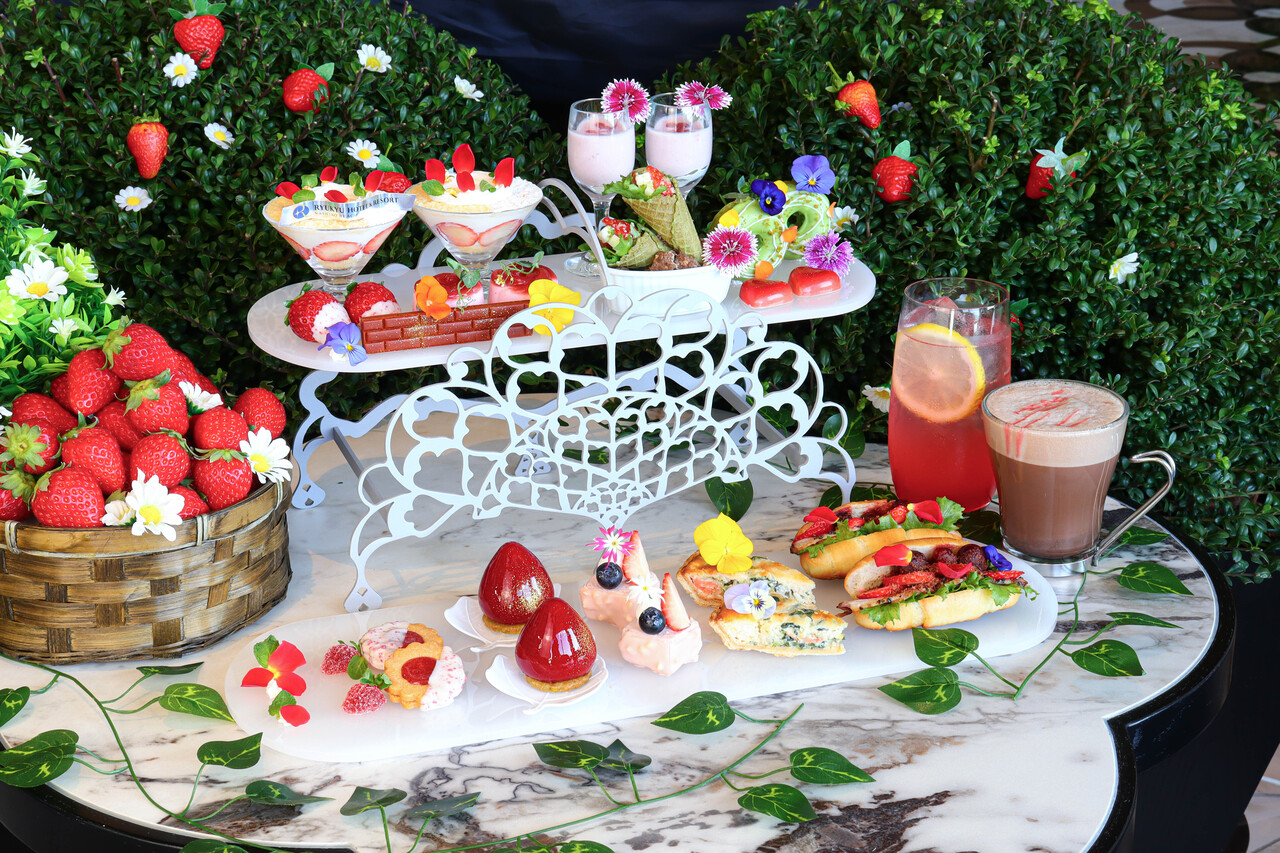 苺畑や春の庭園をイメージした苺づくしのアフタヌーンティー。