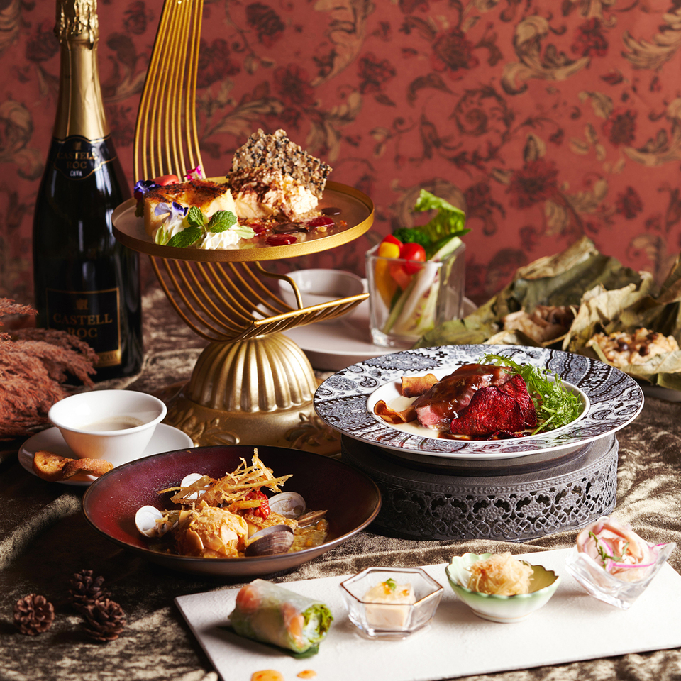 <课程内容> *根据购买情况,内容可能会略有变化。 ◇开胃菜◇ 4种开胃菜拼盘 - 雪蟹砂锅配鲑鱼子 - 红鲷鱼生牛肉片配橄榄酱 - 法式奶油芝士和火腿卡普雷塞 - 熏鸭配橙汁 *内容可能会根据购买情况略有变化 有。 ◇热菜◇牛肝菌乳清干酪馅饼搭配冬季蔬菜◇鱼类菜肴◇挪威三文鱼焗烤和卡戴夫炸虾 陈年马铃薯多菲诺配海胆奶油酱◇肉类菜肴◇烤精选牛肉配和牛牛肉饼皮Lefort酱◇大米◇松露帕尔马干酪烩饭 ◇ 甜点 ◇ 圣诞蛋糕 *照片中的菜肴和菜单仅供参考。 *课程内容可能会根据购买情况而有所不同。