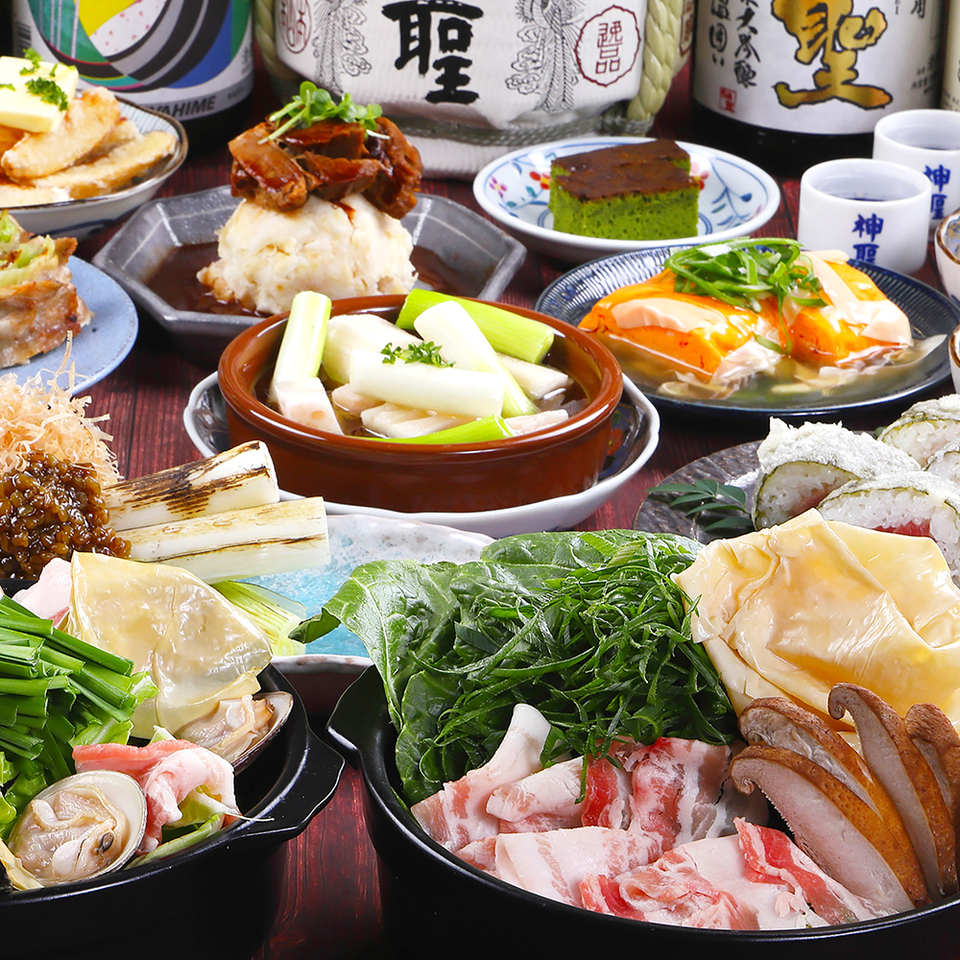 “京都四条酒场新成”最便宜、最方便的方案!主菜是烤地鸡和海鲜盖饭。☆★烤菜、炸菜、京都关东煮拼盘等共9道菜让人很满足。非常适合与公司或朋友一起喝酒聚会☆★ 再加300日元,就可以畅饮13种人气山本本酒♪