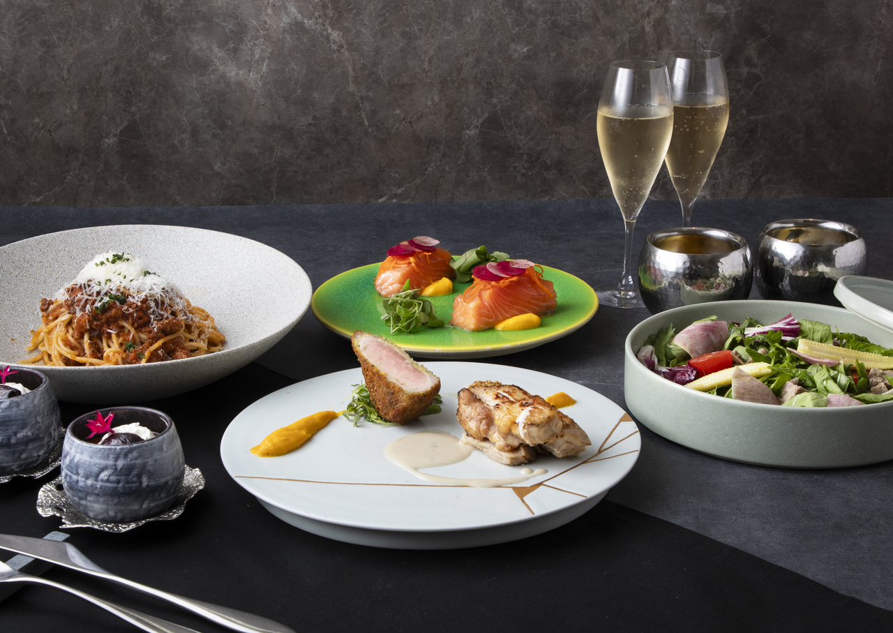 鮮魚のカルパッチョや鶏と豚のWメインを含む