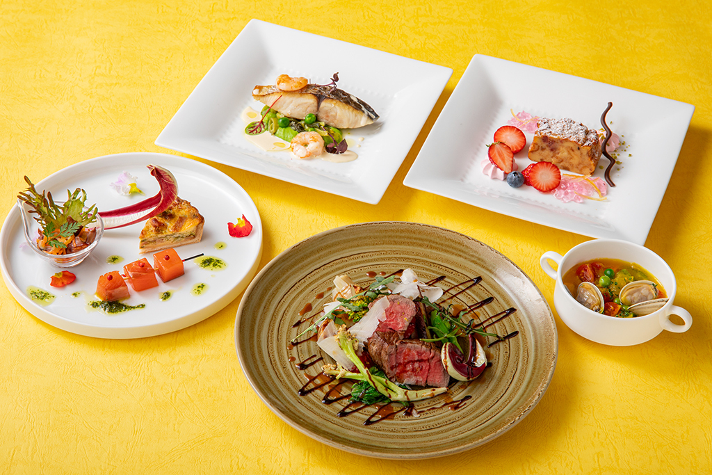 This elevated five-course full-course lunch, prepared with confidence by Executive Chef Atsushi Ishikawa, features a refined appetizer, soup, fish course, meat course, and dessert. Recommended for a special meal with loved ones or for business entertaining.