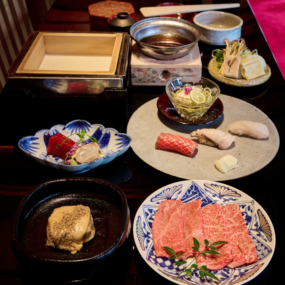 关于仅限团体预订【花园主厨精选套餐】“烤芝麻豆腐和炭烤和牛”&“5件江户前寿司” 平日特惠价 6,600日元(含税)的问题