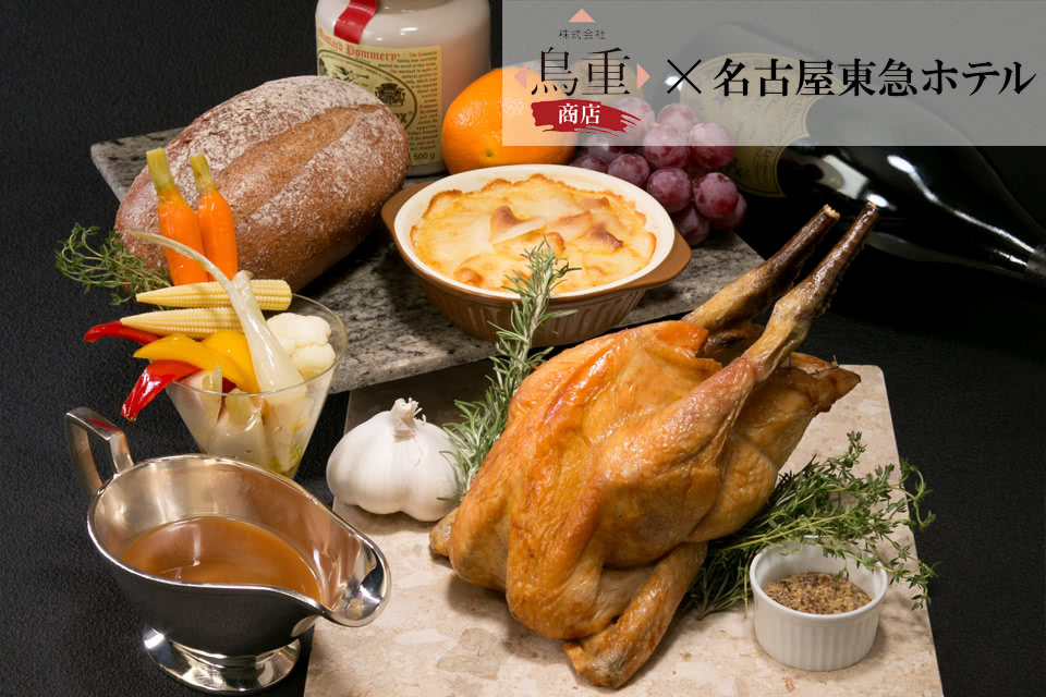 名古屋コーチンをホテルシェフの熟練した技でじっくりと焼き上げた特別なローストチキン。
