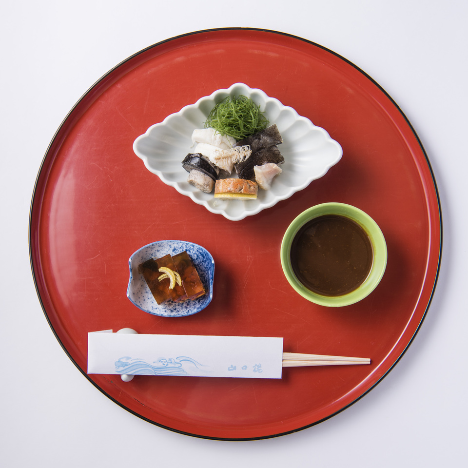 ■筷子染色、新鲜海参、安康鱼和朋友一起拌饭■生鱼片鲷鱼寿司■烤安康鱼肝排(酱油)■烤安康鱼肝排配辣椒、炸茄子和罗勒■美味安康鱼和醋鱼贩7 -件ugo防风■ 炸猴头鱼、炸狮子鱼、柠檬 ■餐点:猴头鱼锅Ojiya(淡洋葱/鸡蛋)香气■餐后水糖果/甜味