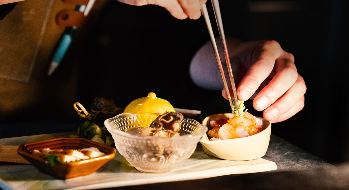 Seasonal delights and sake in perfect harmony.