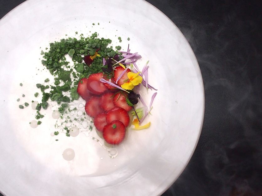 以为是餐厅,入店后却發现是当代美术馆。店内的牆壁以「光」为主题的当代艺术家作品装饰,店内洋溢着艺术的气氛。料理使用来自日本各地的当季食材,并以美食学概念烹调出一级的法国料理。午餐和晚餐根据场合准备了三种套餐可供选择。店内除了平常少人数的用餐以外,也可以便沟为派对用的大胆设计。