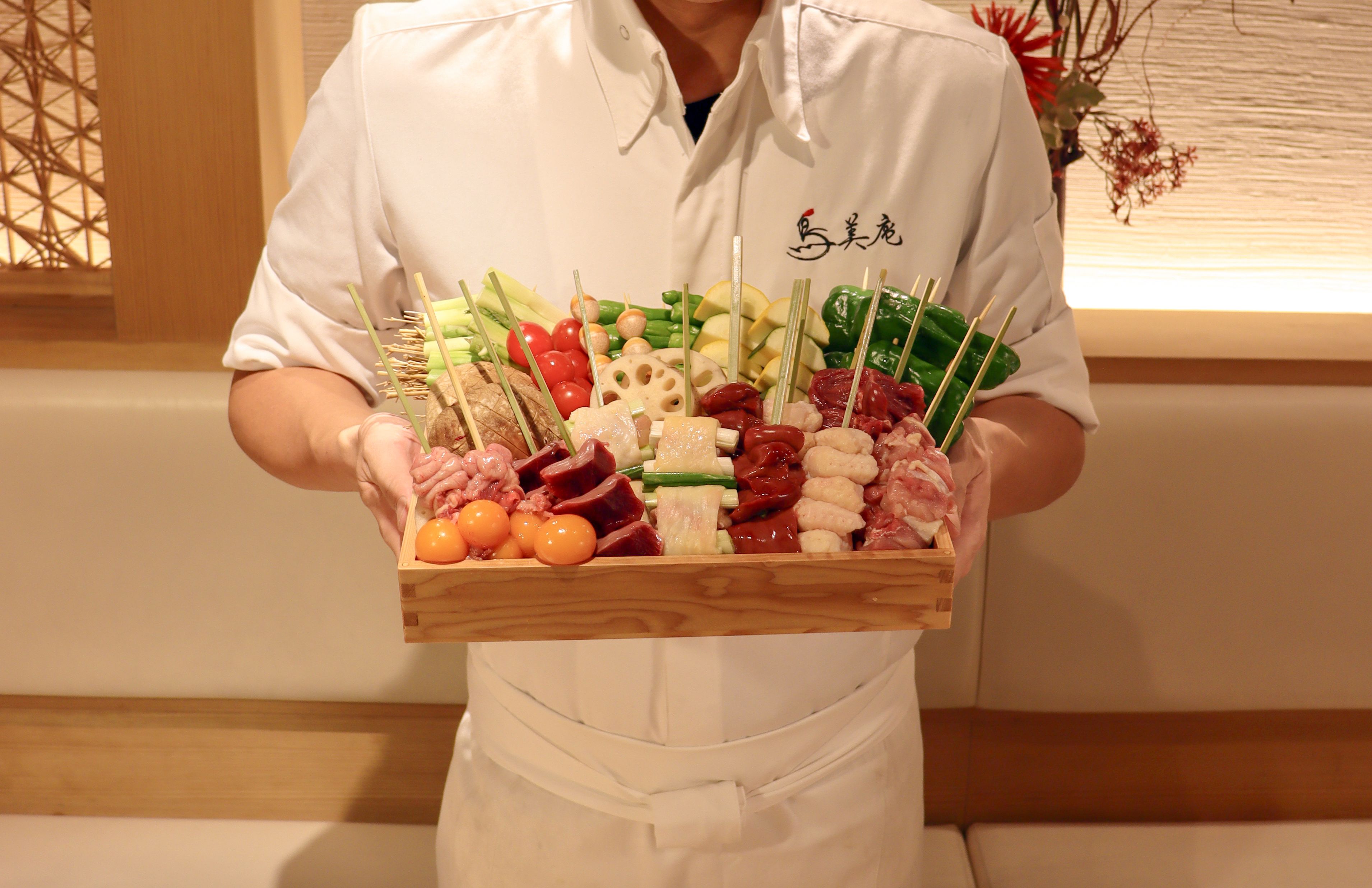 我们的主厨将精心烤制一份拼盘,包含三道开胃菜、三道清口菜、六串日式烤鸡串、两串当日特色烤串和两串蔬菜烤串。