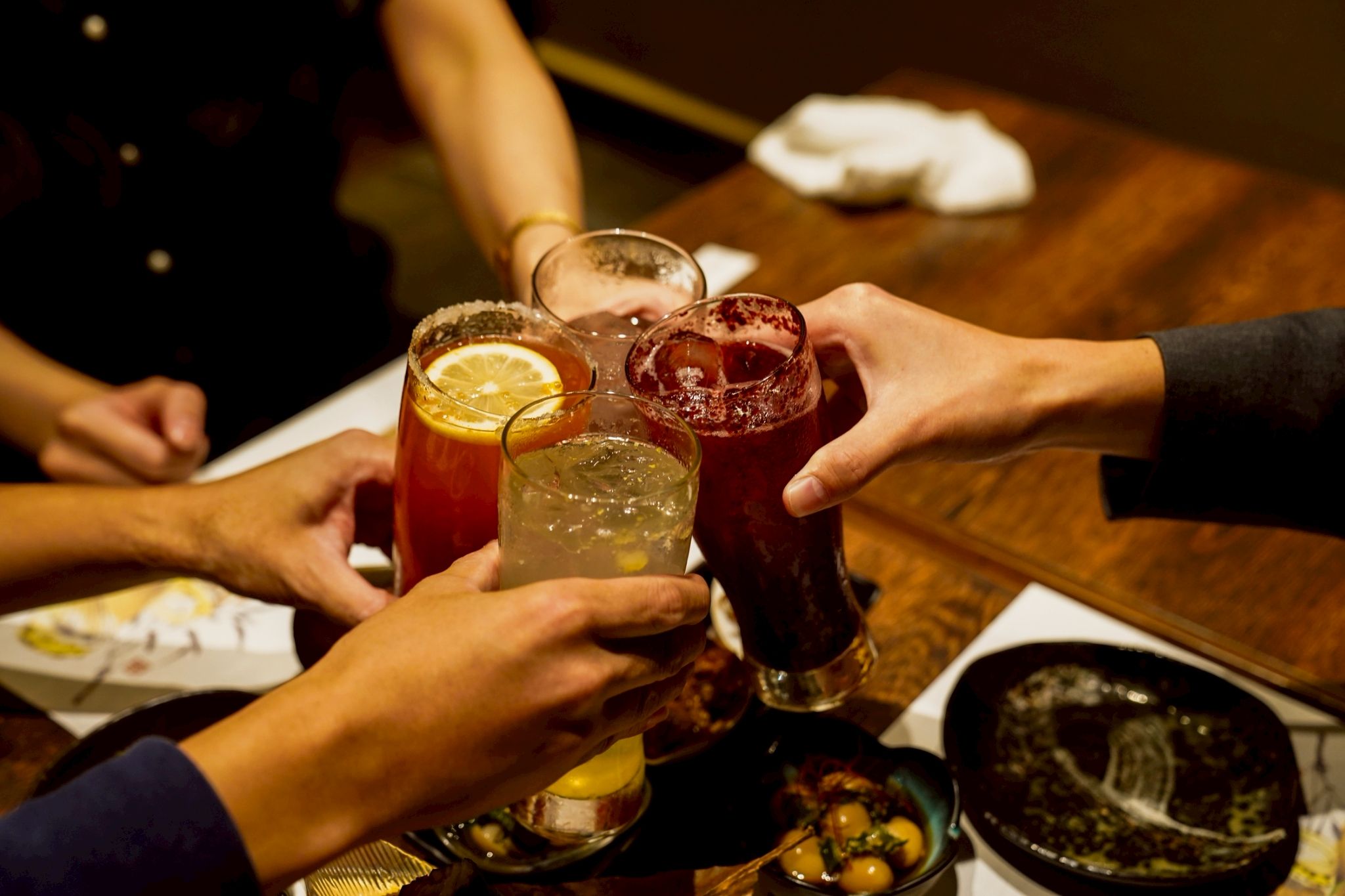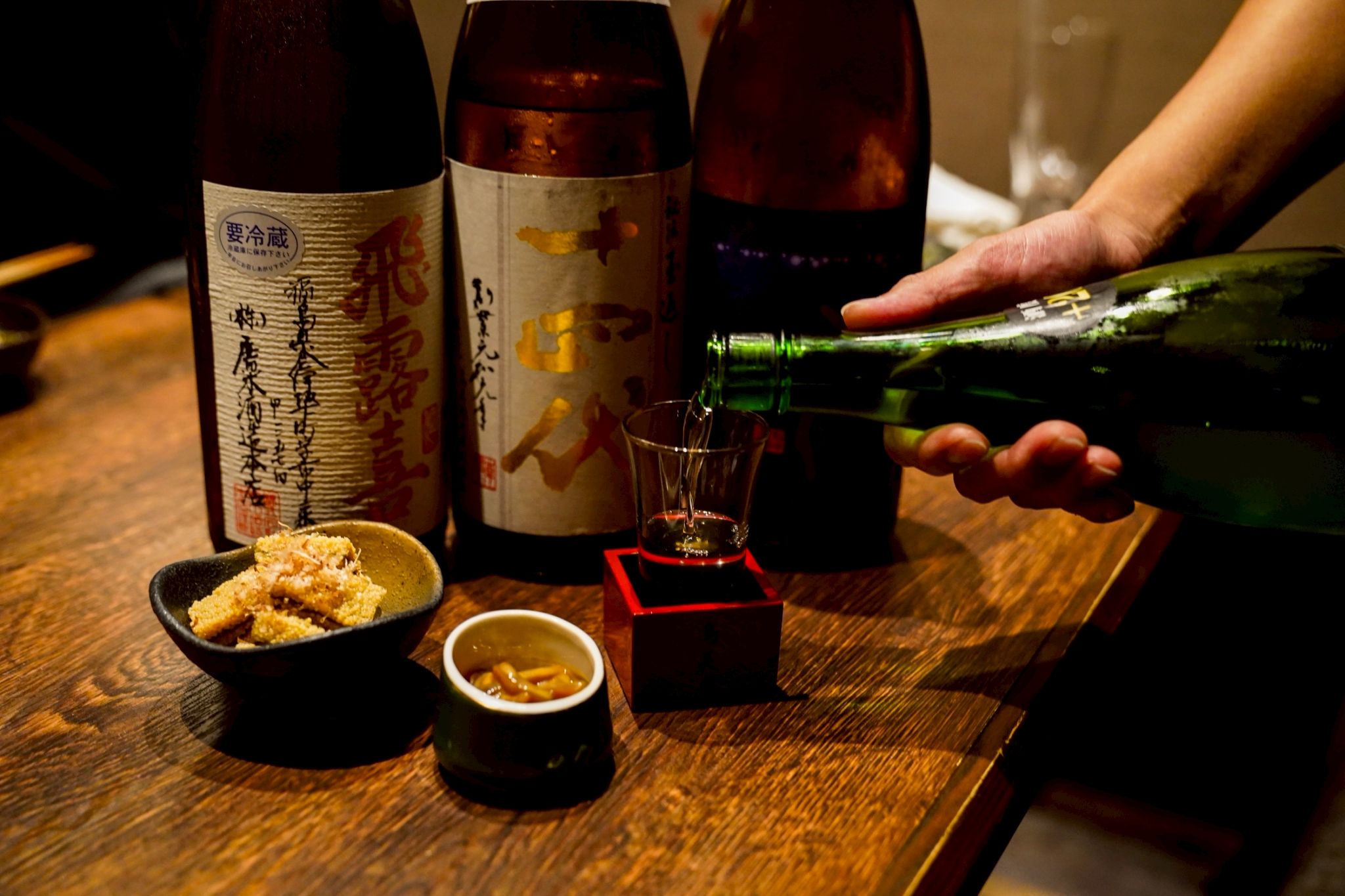 所有座位均为半私密空间,以隔断分隔。 在轻松现代的日式空间中,与挚友共享欢乐时光,品尝精心挑选的日本料理、来自日本各地的清酒以及我们种类繁多的原创酸味饮品。