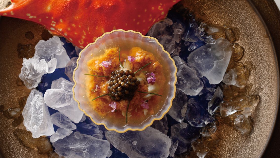 We express our cuisine using French techniques based on the structure of kaiseki (traditional Japanese multi-course meal). We use carefully selected seasonal ingredients and serve freshly prepared dishes right in front of you. Enjoy our genre-blending dishes, crafted from fresh ingredients and infused with the aroma of charcoal grilling and French culinary expertise.