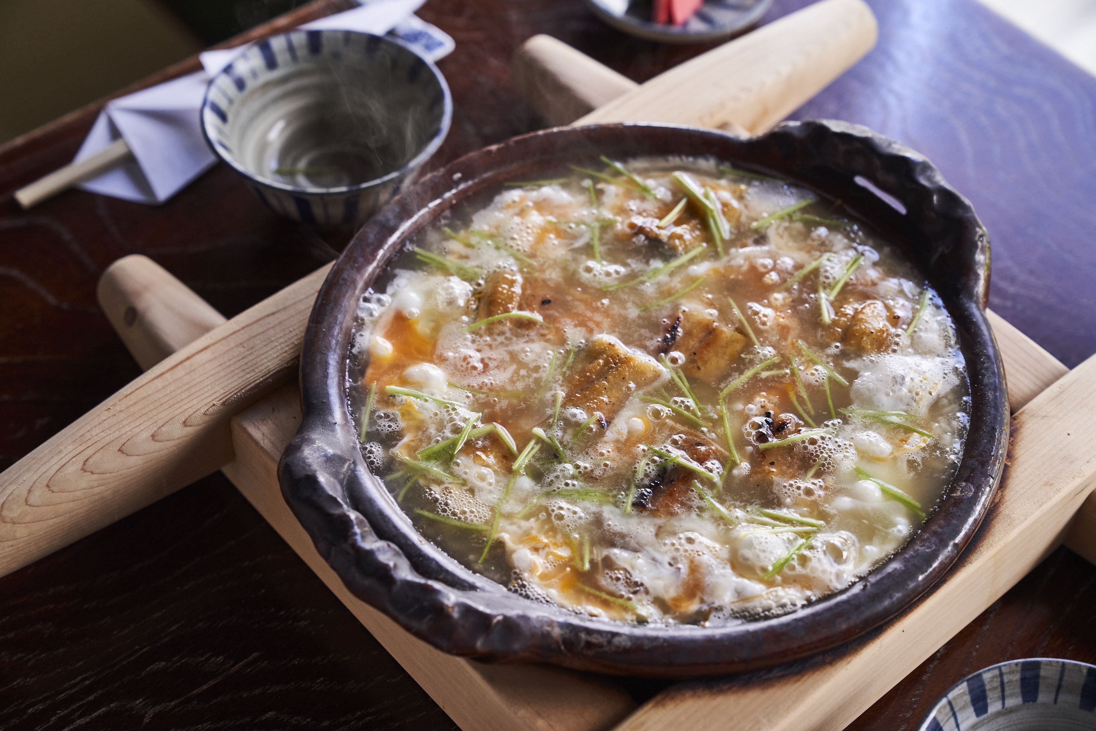 店名は、太閤秀吉が方広寺に参内した帰りに、店の前で草鞋を脱いで休んだことが由来となっています。わらじやは400年という歴史を誇っている老舗のうなぎやです。そのため店の外観も歴史を感じさせる風情のあるものとなっています。店内でお召し上がりいただくのは、うなべやうそぶすいなどのうなぎ料理です。うなべとはうなぎを筒切りにしたものと焼き葱が入ったお吸い物で、うそぶすいとはうなぎの白焼きと土地の野菜を雑炊にしたもの。木造の情緒豊かな建物とマッチする、優しい味をお楽しみいただけます。