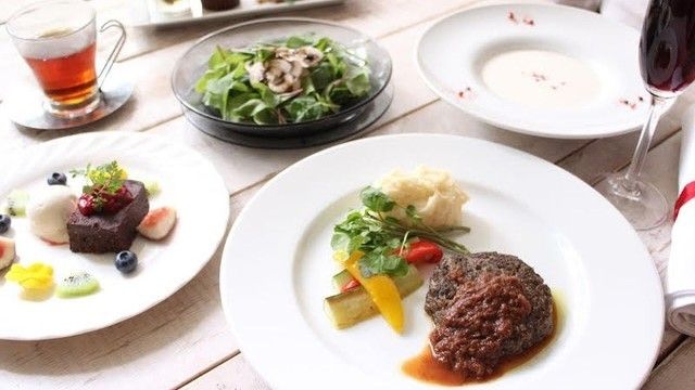 With natural light shining through our greenery-filled windows, we offer you a wide space where you can feel the warmth of trees. Be awed by our antique furniture and tableware directly imported from Morocco in our white, wood-based interior. We harness aromatic spices and herbs for our salads. Our vegan pancakes are sweetened with plant-based syrup and beet sugar and satisfy your cravings well.
