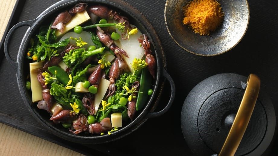 黒を基調とした板張りで大部分が構成され、京都らしさを感じる古風でシックな空気が佇む店内に洋風テーブルが立ち並ぶさまは、和洋折衷ならではの優雅さを感じます。お出しするメニューは京都で生み出された厳選素材で仕上げた絶品グルメ。コバタケファームや大原山田農園で生まれた京都米や平飼い卵、松野醤油の味噌・醤油などを贅沢に使用しています。京都の家庭料理から洋食まで取り揃えたアマン京都で優雅なひとときをお楽しみください。