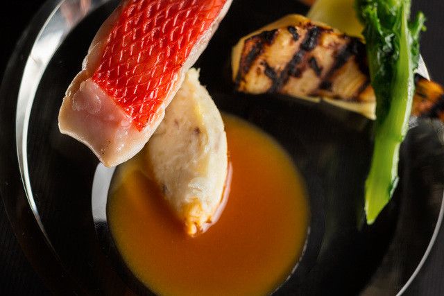 在拥有250年历史的豪宅翻新而来的店内,与小镇的喧嚣仿佛是另一个世界。这里是可以品味到大正时代的美丽和平成时代青铜的辉煌的深邃空间。 深知时令食材的大厨石井之悠操刀的午餐与晚餐简直是艺术品。 我们听取客户的要求,制作世界唯一的地道法餐。备有黑毛和牛里脊,腌制鲜鱼,京都时令蔬菜等多种菜肴。 请与配菜的葡萄酒一同享用。