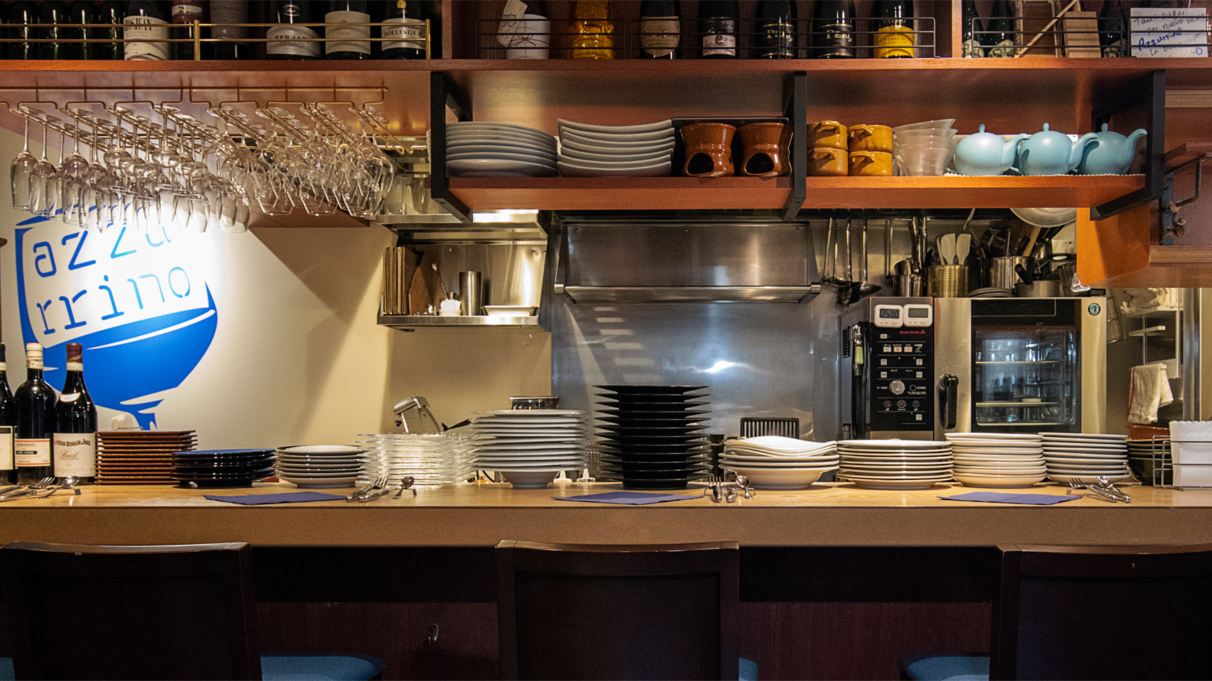 ガラス窓から光が差し込む明るい店内は、まるで南イタリアのリストランテ。来る人を優しく包み込んでくれる、くつろぎの空間が広がっています。オープンキッチンを臨むカウンター席からは、シェフの包丁さばきが堪能できます。 会津産馬肉のタルタル、明石たこのラグーソースなど、日本の食材を使ったイタリアの伝統料理をご用意。お食事に合うワインも多数ご用意しておりますので、マリアージュをお楽しみください。