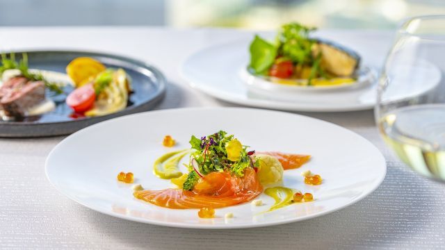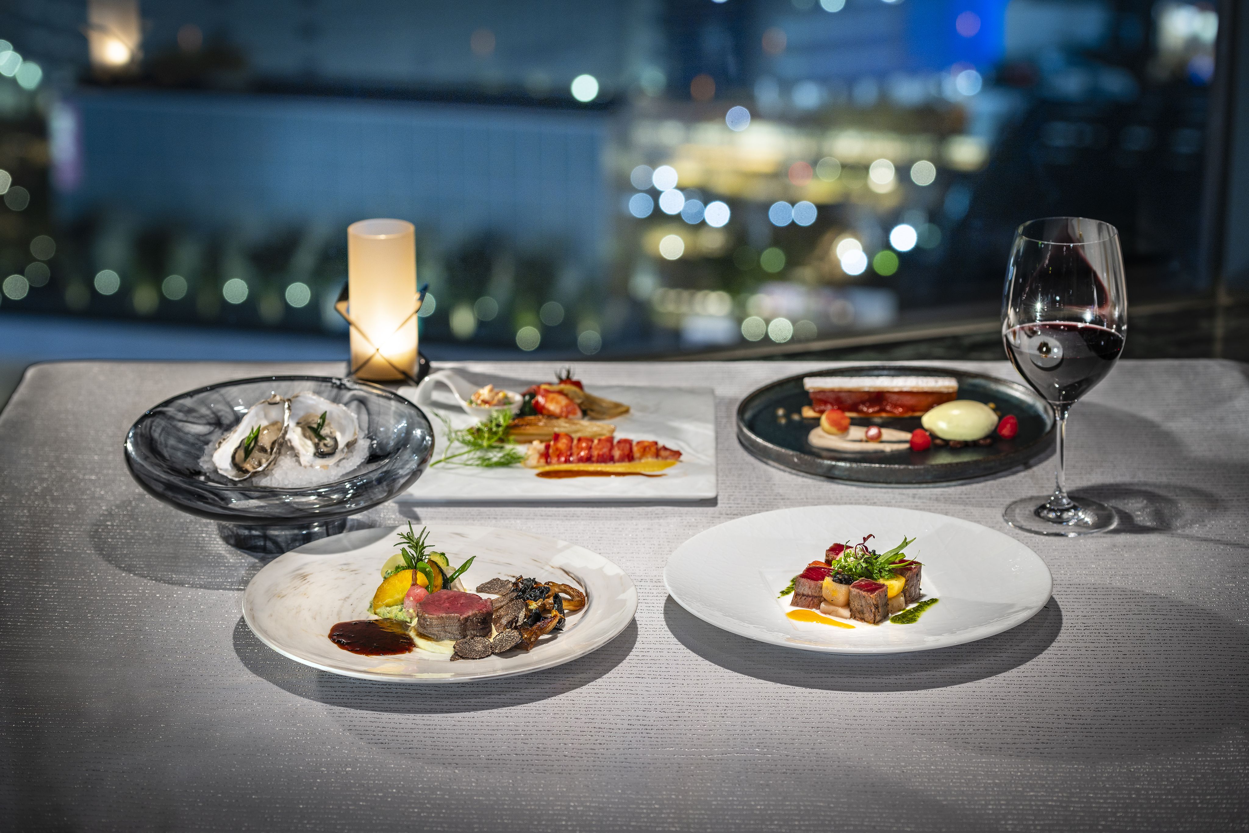 以傳統正宗法國菜為基礎精心烹製當季食材,讓您在頂樓一邊眺望窗外無敵景色、一邊享用新風格的法國菜。晚餐時間有現場演奏,伴隨您品嚐精緻的菜餚和名酒。