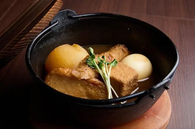 創業80年を超える老舗寿司・鰻屋の直営店として、「和の心」をしゃぶしゃぶという形で表現する人気店です。看板メニューのしゃぶしゃぶは、羅臼昆布と三種の節を重ねた秘伝の出汁が決め手。お肉を秘伝の出汁にくぐらせることで、素材本来の甘みと旨みが引き立ちます。しゃぶしゃぶの具材には国産豚バラやロース、黒毛和牛サーロインなどがあり、いずれも1人前40gと少量サイズから提供していますよ。 さらに、お出汁の魅力をもう一つの形で楽しめる「秘伝出汁しみしみのおでん」も注目のメニュー。