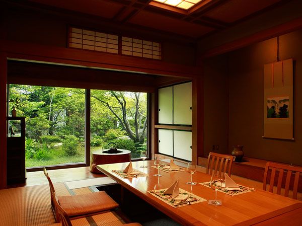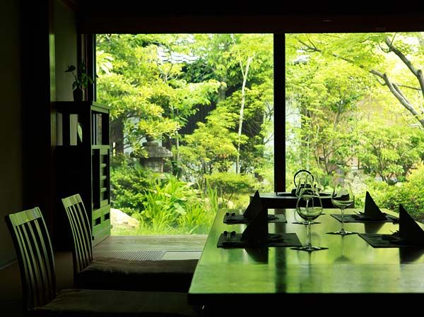 藤、葵、桜、萩殿という4つの客室棟を備えそれぞれに和洋異なった趣でおもてなしします。北陸地方の古民家を解体して移築した建物は心安らぐ憩いの空間を作り出し、懐かしさを漂わせながらも確かな存在感を放つ調度品はこだわりのチョイスです。地元静岡近海の新鮮な魚貝や地産の野菜を使用した「和魂洋才」がテーマとなっている季節のコース料理は優しい口当たり、されどしっかりと記憶に焼きつく味を堪能頂けます。富士の名水で醸造された地酒や世界の名酒も取り揃えていますので、お料理と至福の時間のお供にどうぞ