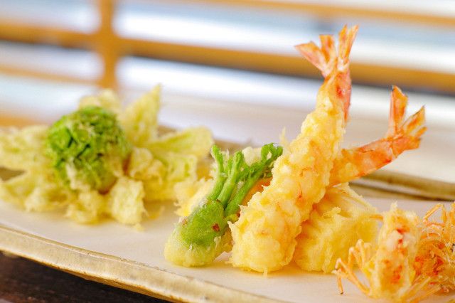 Located on the 7th floor of the Keio Plaza Hotel, our calm interior blends Japanese and Western styles, using gold tones to create a brilliant atmosphere. We offer both a chic counter and cozy tables that can easily be used for group meetings. Both are perfect for enjoying our chef's masterfully fried tempura. You can enjoy seasonal wild vegetables, seafood, and various novel ingredients.