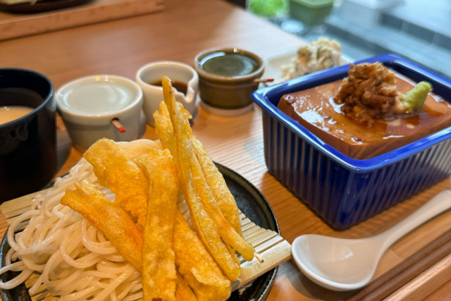 Appetizers, Sashimi, Hotpot. 8 to 10 dishes in total, including tofu and yuba.