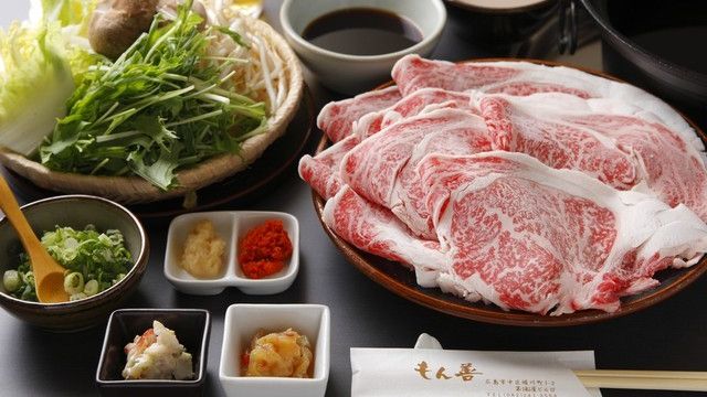 のれんをくぐって店内に入れば、明るい雰囲気のある空間が広がっています。畳の座敷に黒塗りの机、和モダンの空間は落ち着いた雰囲気で、お食事に集中できる空間です。 ブランドではなく品質にこだわって仕入れたお肉は、すべて国産で、このお肉を楽しめるしゃぶしゃぶやすき焼きはもちろん、豚肉と複数種の野菜、そしてニンニクや薬味を添えたスープとともに提供される当店オリジナルの「もんすき」鍋を是非ご堪能ください。地元広島をはじめとして全国から厳選した名酒も数多く揃えています。