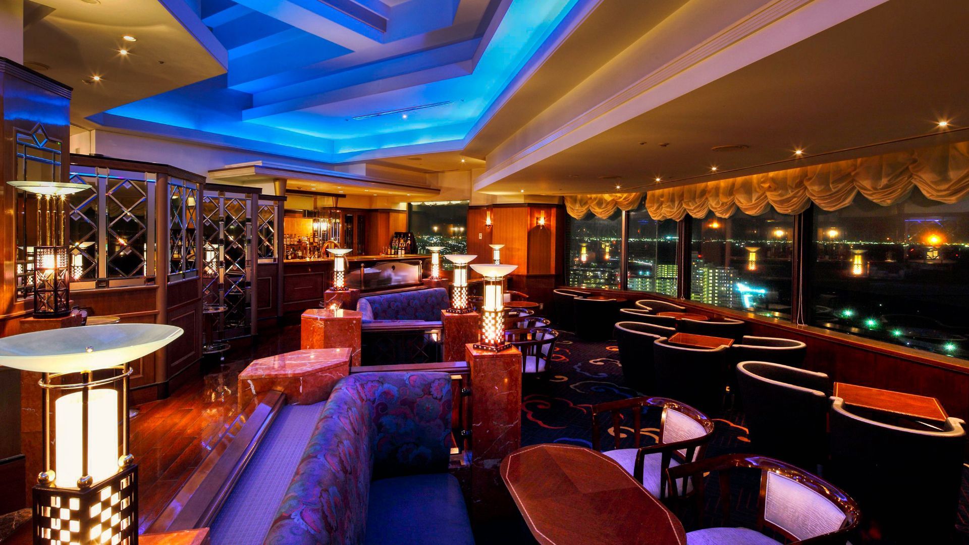 駅から歩いてすぐのホテル最上階に位置している当店は、東京湾の夜景をイメージした暗めの青い照明が特徴です。季節のスイーツをふんだんに使ったアフタヌーンティーやパンケーキなど、東京湾を一望しながらじっくりと味わうことができます。ティータイムにはパティスリーSATSUKIのケーキセット、バータイムにはカクテルを楽しめます。
