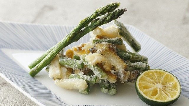 April ■ Seasonal Appetizer ■ Seven Tempura Dishes ・Seasonal Seafood (Shrimp, Conger Eel, Sweetfish) ・Seasonal Vegetables (Lotus Root from Inashiki, Ibaraki Prefecture, Red Eggplant from Kumamoto Prefecture, Sweet Potato from Ichige Farm, Asparagus) ■ Main Course Kakiage (mixed vegetable tempura) of Sakura Trout and Perilla Leaf Choose from Tendon (tempura rice bowl), Tenbara (tempura with red miso soup), or Please choose from the Tencha (tempura tea) menu.