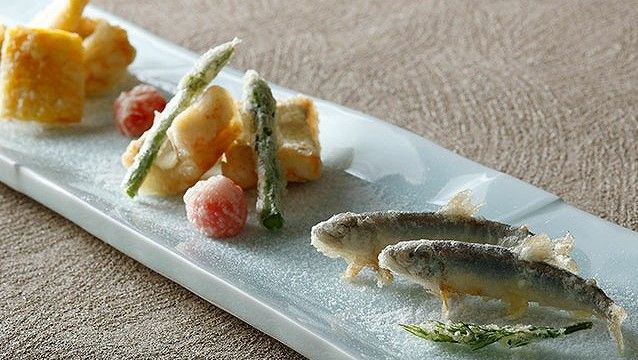 April ■ Seasonal Appetizer ■ Nine-Course Tempura ・Seasonal Seafood (Shrimp, Conger Eel, Young Ayu Fish, Young Ayu Fish) ・Seasonal Vegetables (Lotus Root from Inashiki, Ibaraki Prefecture, Red Eggplant from Kumamoto Prefecture, Sweet Potato from Ichige Farm, Asparagus, Bamboo Shoot) ■ Main Course Cherry Trout and Perilla Leaf Kakiage Please choose from: Tempura Donburi, Tempura Bara (with red miso soup), or Tempura and Tea ■ Dessert