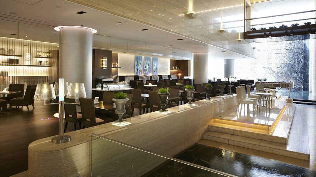 自然光さしこむメインロビーのスタイリッシュなティーラウンジで優雅なひとときを