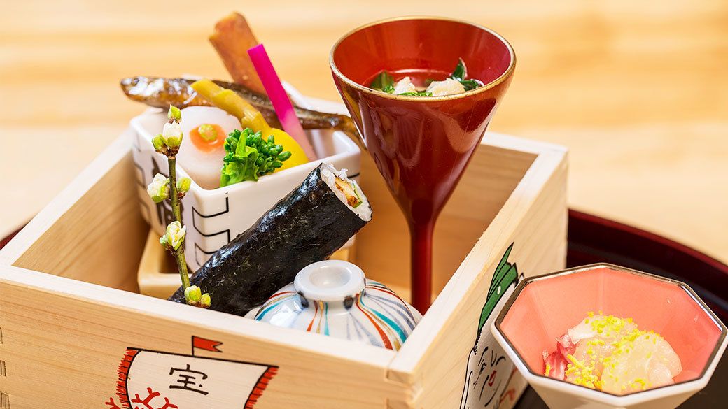 Master chef Hideto Yamazaki's seasonal dishes stay true to the style and philosophy of Heiji Tamura, founder of the highly-esteemed Tsukiji Tamura. Enjoy traditionally prepared Japanese delicacies made from fresh seafood and other fine ingredients, all beautifully presented in Japanese-style containers and dishware in a peaceful and sophisticated environment.