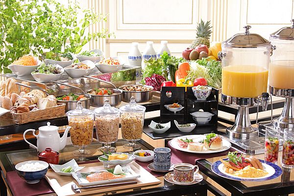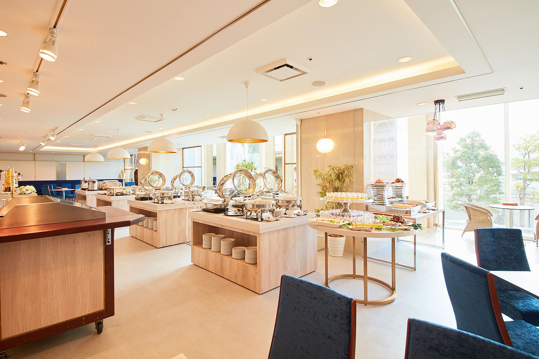 從巨大的玻璃窗里投射出令人心情舒暢的自然光的餐廳。在有開放感的空間中,可以享用日洋中30種以上的料理和甜品的自助餐。午餐時間因女性客人而非常熱鬧,特別是甜點櫃台十分有人氣。早餐從傳統的日本早餐到美式早餐應有盡有,不僅是酒店的住宿客人,一般的客人也會光臨。請在充滿陽光的店內享受悠閒的早餐。