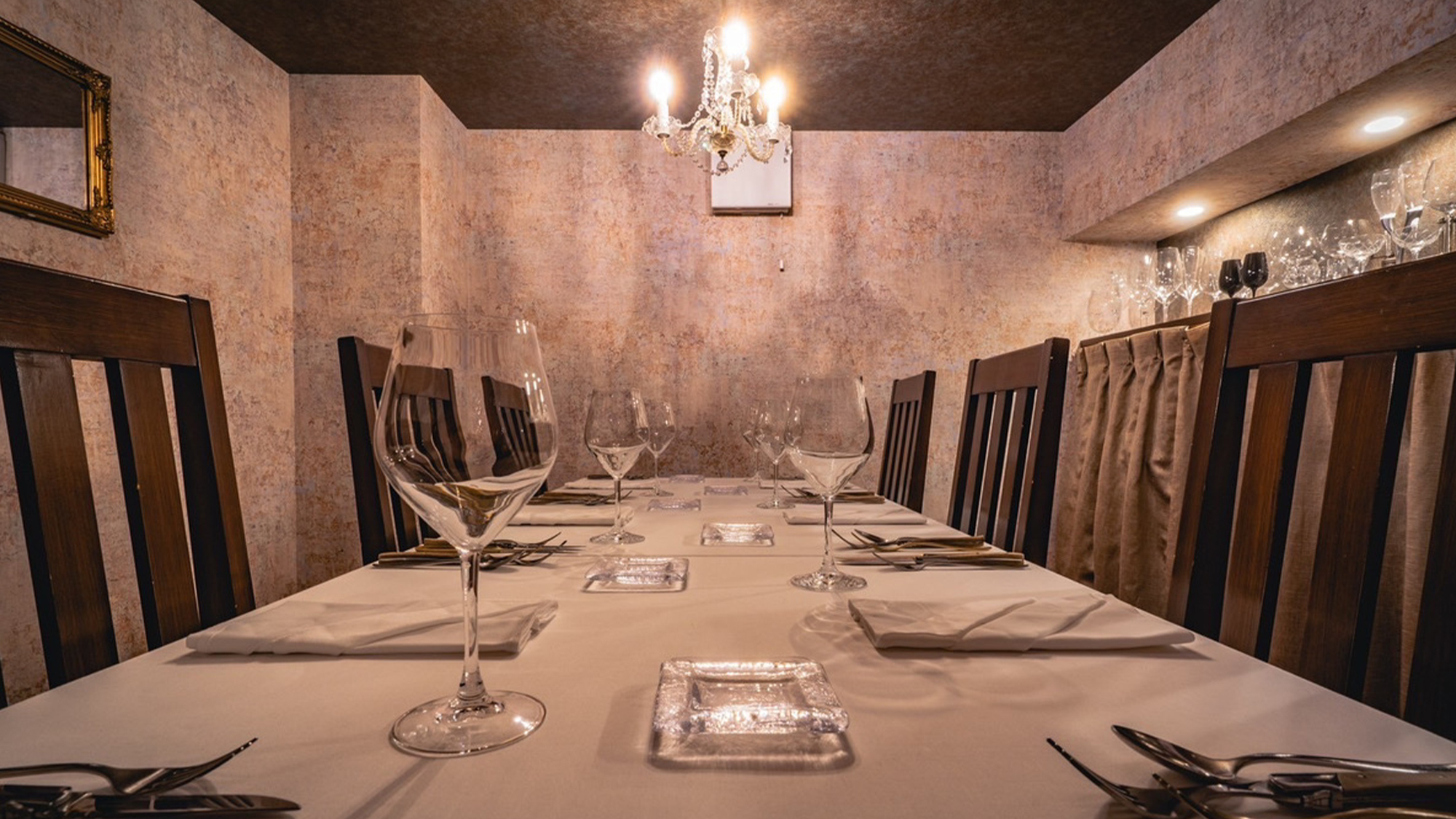 店内はシックで上質な雰囲気を楽しみたい方のために、完全予約制となっております。厳選された地元広島をはじめ、世界各地の食材にこだわり、伝統的なイタリア料理をベースとした料理をコース仕立てで堪能できます。料理は食材により火入れを変えたり、盛り付けによる見た目からの演出もお楽しみいただけます。またイタリア料理を楽しむ際に欠かせないのが、ワインです。「イタリア料理とワインが織りなすストーリー」を味わいながら、贅沢な時間をお過ごしください。