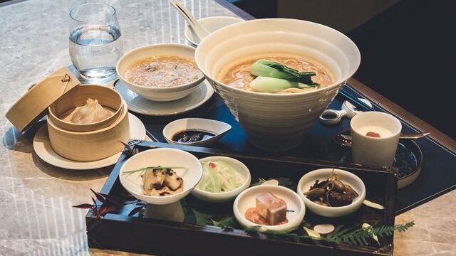 歴史とモダンが調和した荘厳な佇まいの建物の1階。そこにあるのが上海で星を獲得した名店「蟹王府」の日本支店です。店内では、中華風の壁や絵画が生み出す魅惑的な雰囲気と、フレンチらしい優雅な雰囲気を楽しんでいただけます。 そんな贅沢な場で堪能していただけるのが、独自のレシピを用いた上海蟹料理です。上海蟹の姿蒸しや蟹肉の入った点心など豊富なメニューをご用意。材料の上海蟹は中国の自社養殖場から空輸しており、品質、鮮度、安全性、いずれも厳しくチェックされたものを使用しています。