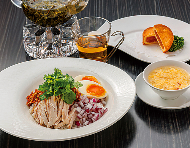 メインの料理を3種より1つお選び頂けます。全てのお料理に点心2種とデザート付き。
