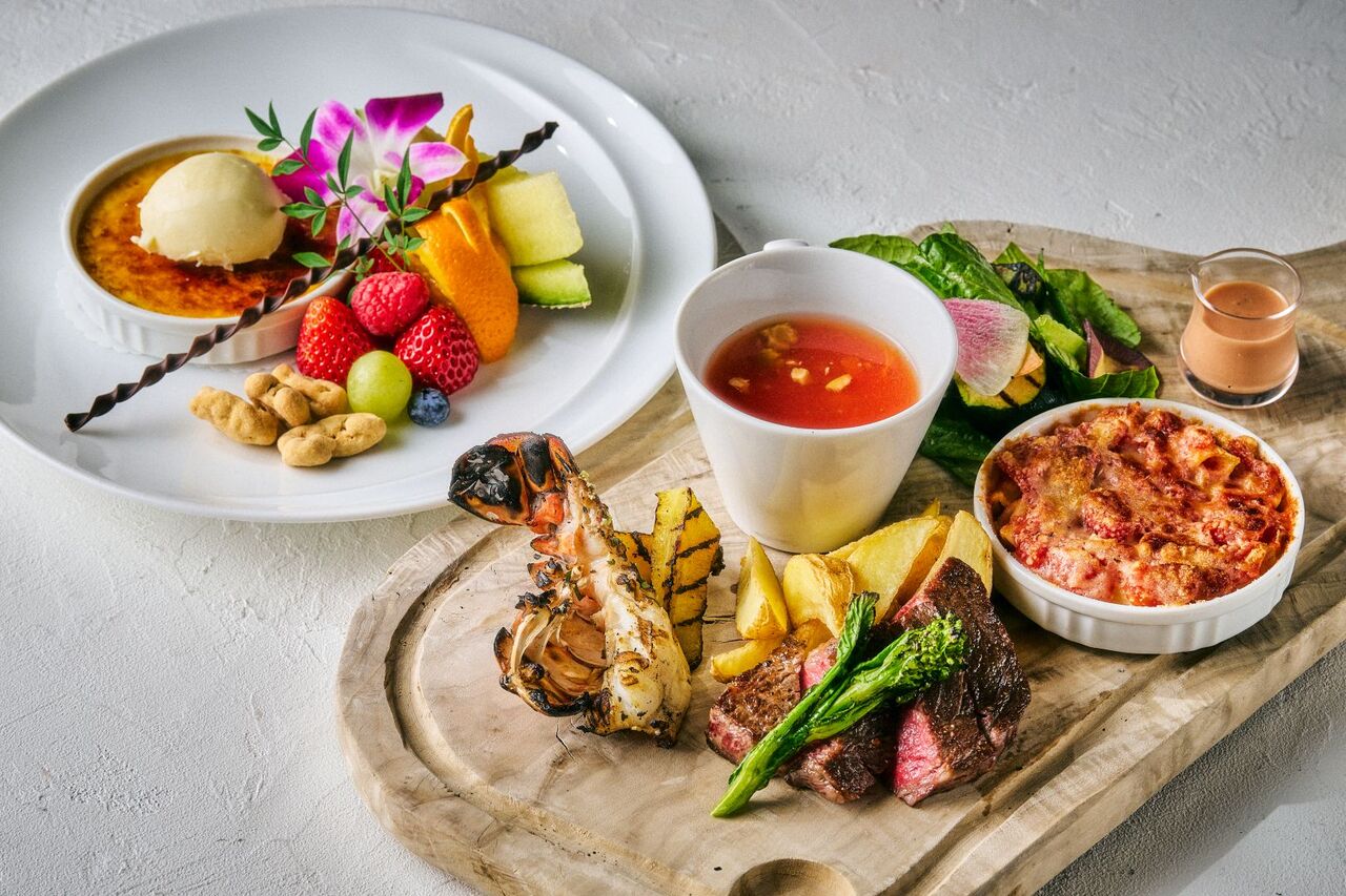 The main course is a special wood-fire style lunch with a choice of wood-grilled meat or seasonal grilled fish. Dessert, coffee, tea and bread are included.