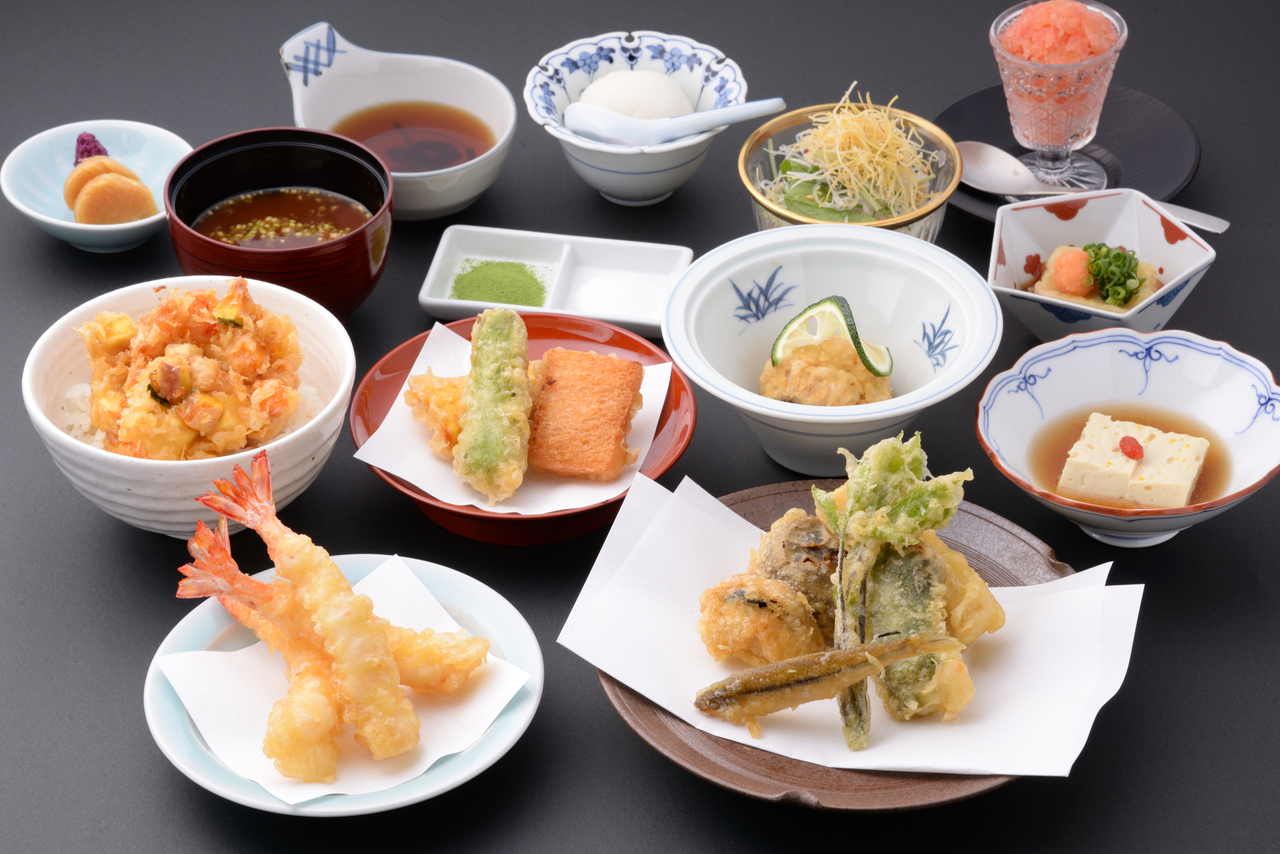 天婦羅無限量供應使用京都傳統蔬菜、山菜以及時令海鮮和蔬菜按照您的要求進行油炸的超值天婦羅套餐。