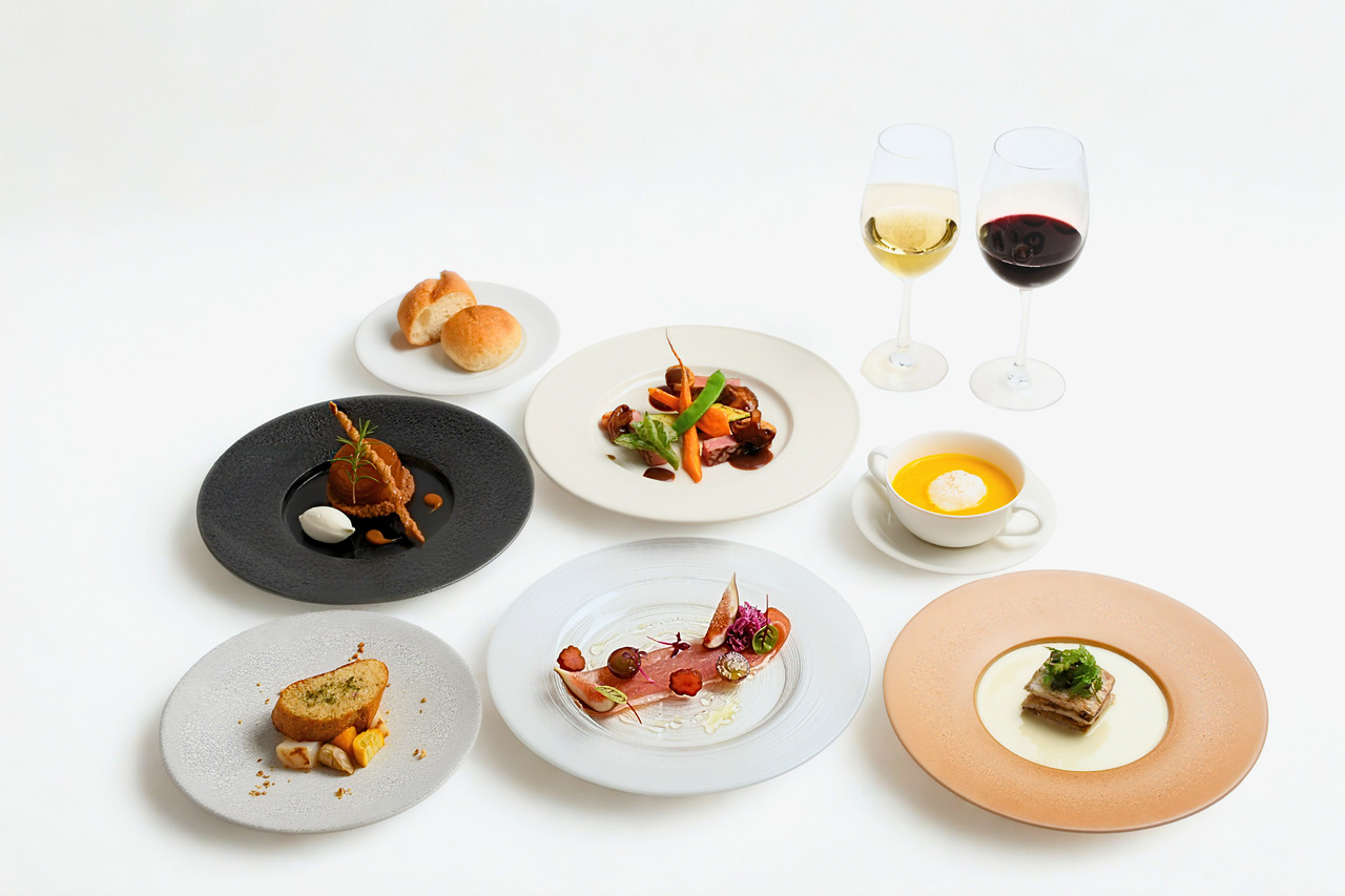 ・开胃菜 ・汤 ・主菜 ・沙拉 ・面包或米饭 ・甜点 ・咖啡或茶 您可以从以下选项中选择主菜。 ・鲷鱼和海鲜海鲜饭・烤大西洋鲑鱼配自制塔塔酱・扇贝炒松子黄油 +600日元(含税)・今日鱼类・汉堡牛排配多美釉汁・烤大山鸡配东北牧场萝卜日式酱汁・三元猪五花肉配东北牧场罗勒酱・烤澳大利亚西冷牛排配多美釉汁或芥末酱油 +900日元(含税)