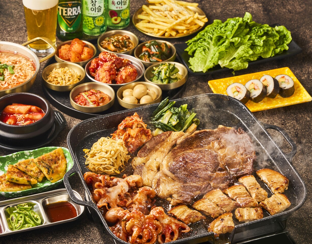 ちょっと贅沢に黒毛和牛ステーキや特製サムギョプサルが堪能出来るプレミアムBBQプラン!!!もちろん「パンチャン」やキムチバーなど全10種が食べ放題!!