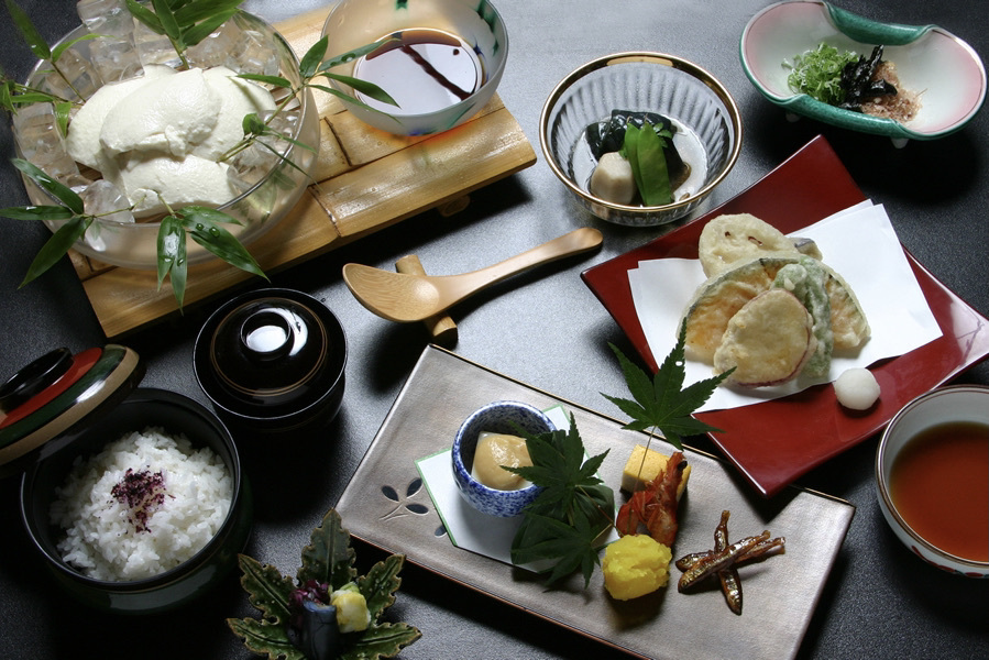我們準備了尊重南禪寺招牌菜「湯豆腐」口味的菜單和素食料理。請品嚐素食八吋、芝麻豆腐、天婦羅等當季美味,度過輕鬆愉快的時光。