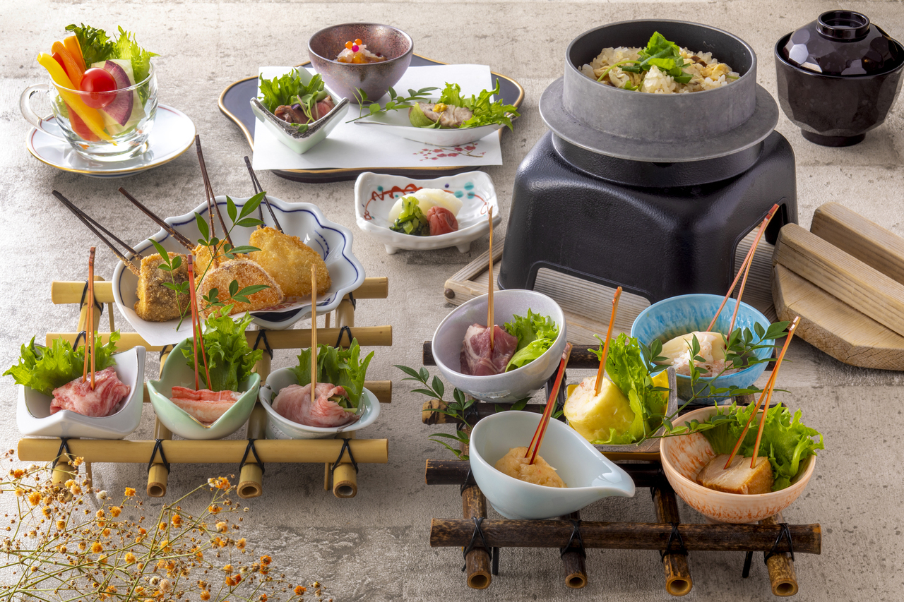 串炸:蟹肉棒、蟹肉醬蝦仁馬鈴薯、腐皮蟹肉捲、蟹肉餃子、神戶牛肉、抱子甘藍牛肉、神戶豬肉、紅燒五花肉及其他四種蔬菜