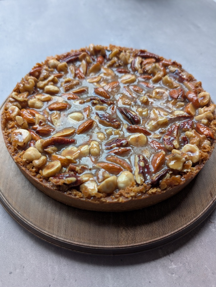 しっとりとした食感と粗めに砕いたアーモンドのザクザク感が残るタルト生地が絶妙なバランスに。