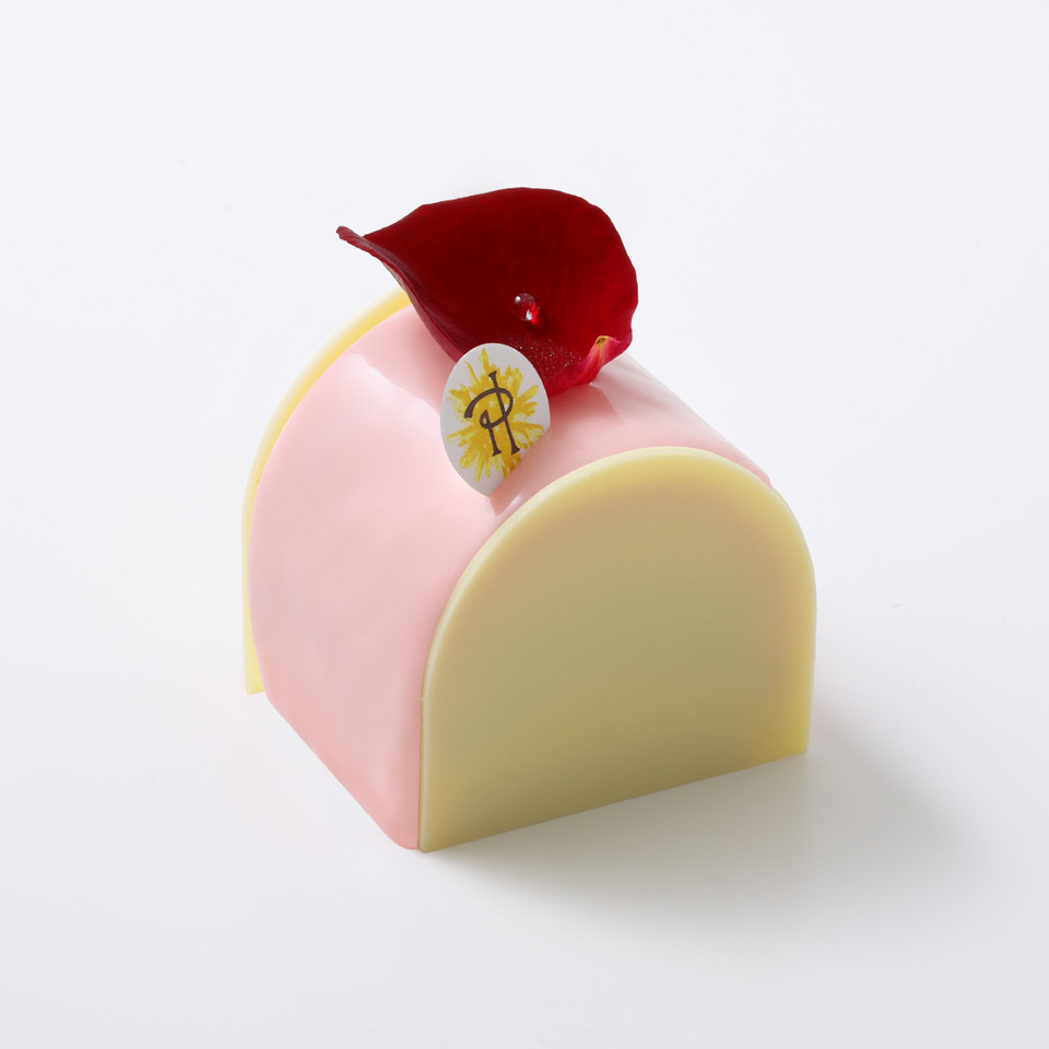 From the rose-colored macaron cock that has both a soft and crispy feeling, an irresistible combination of tastes gushes out. Here, the glamorous flavor of lychee, garnished with crispy and refreshing raspberries, marries exquisitely with a melty sweet rose cream.