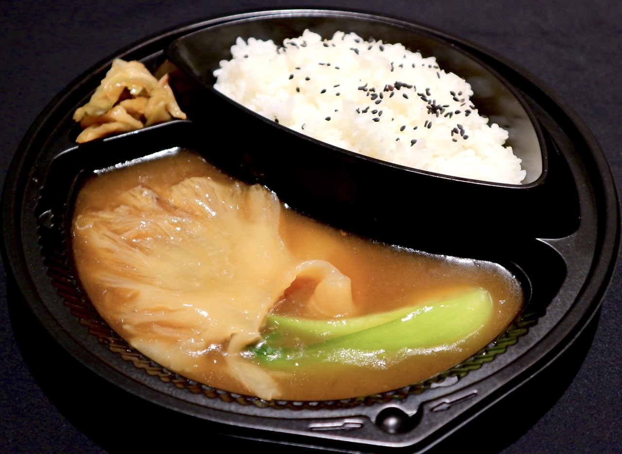 フカヒレの醤油煮、ご飯、ザーサイのお弁当です。