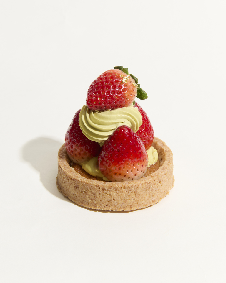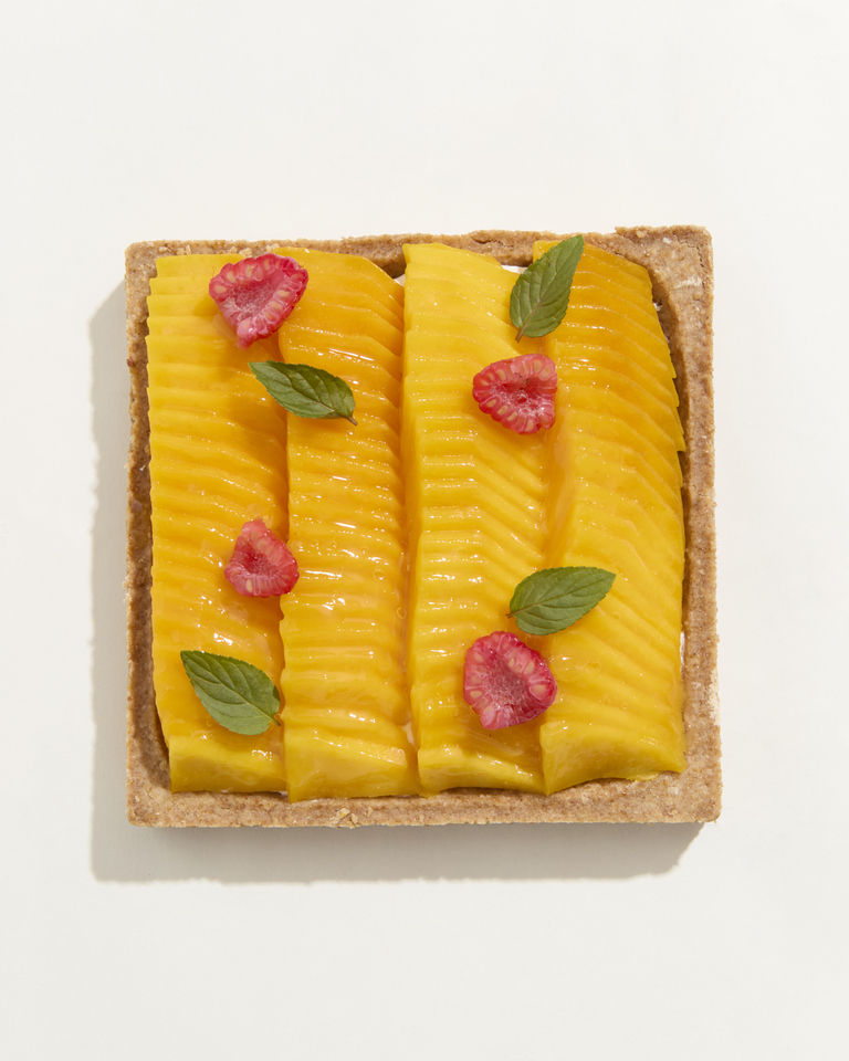 とろけるような滑らかな⼝当たりに芳醇でトロピカルな⾹り漂うマンゴーのタルト。⼀枚⼀枚繊細に広がるバラのように彩った美しいデザインでご提供いたします。