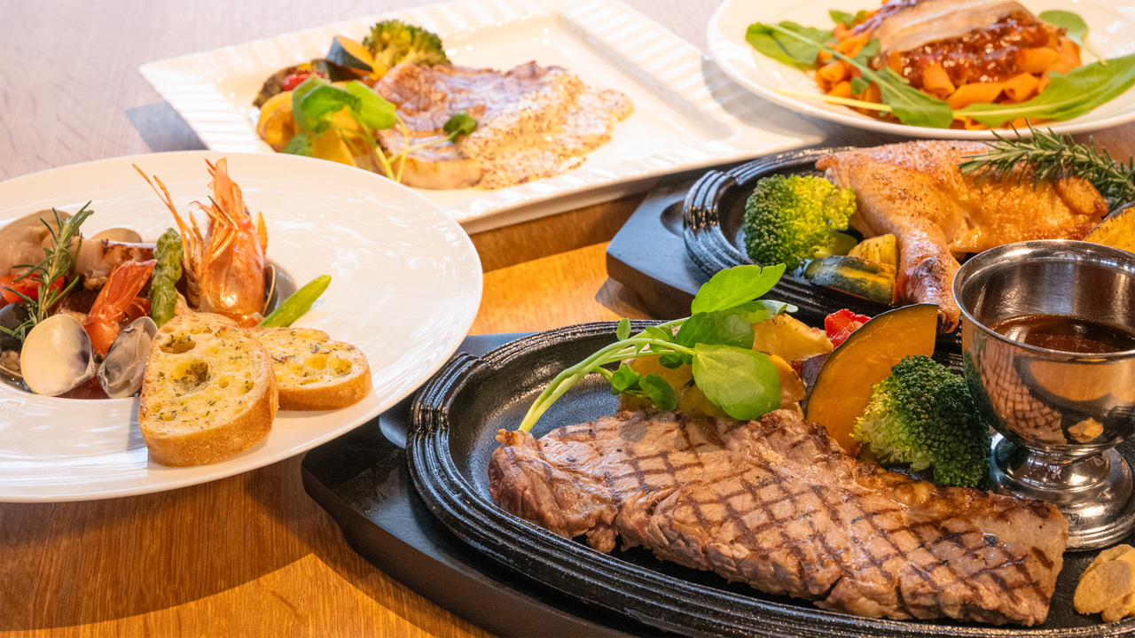 您可以從七種主菜中選擇自己喜歡的菜餚,並享用半自助餐。