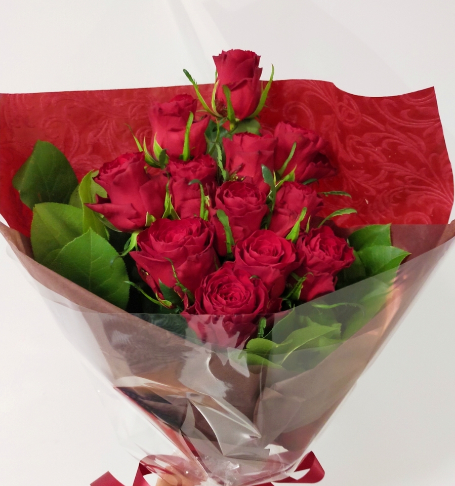 ①赤いバラの花束12本:結婚記念日のプレゼント・プロポーズに。