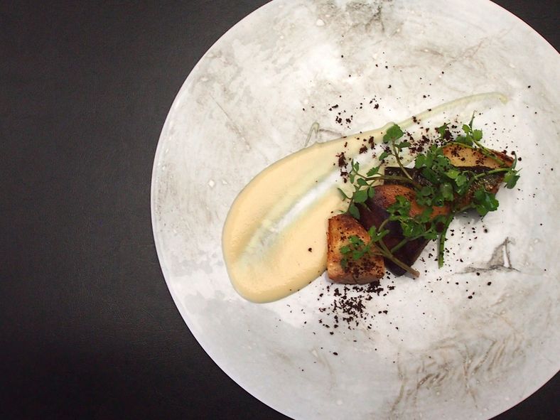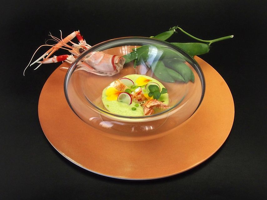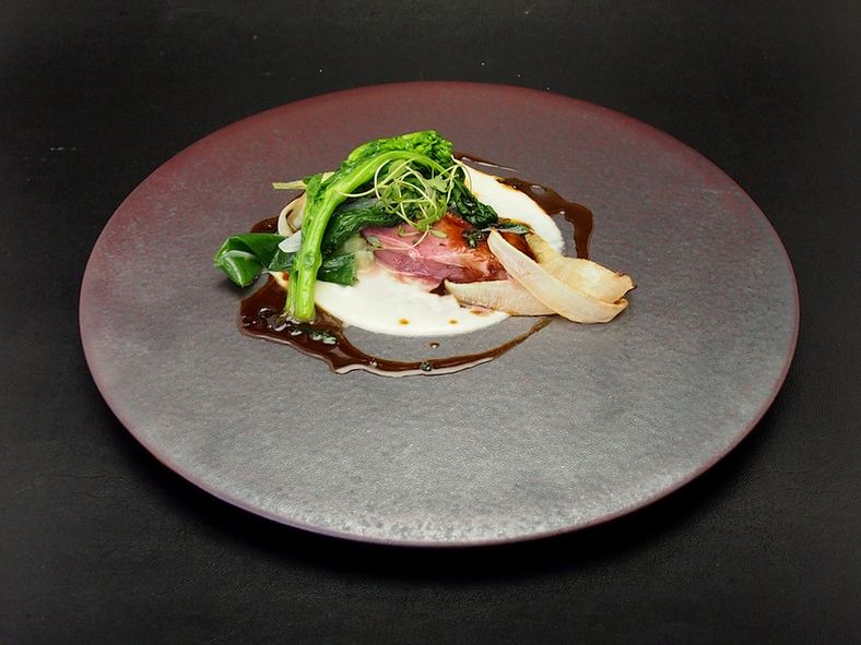 以為是餐廳,入店後卻發現是當代美術館。店內的牆壁以「光」為主題的當代藝術家作品裝飾,店內洋溢著藝術的氣氛。料理使用來自日本各地的當季食材,並以美食學概念烹調出一級的法國料理。午餐和晚餐根據場合準備了三種套餐可供選擇。店內除了平常少人數的用餐以外,也可以便溝為派對用的大膽設計。
